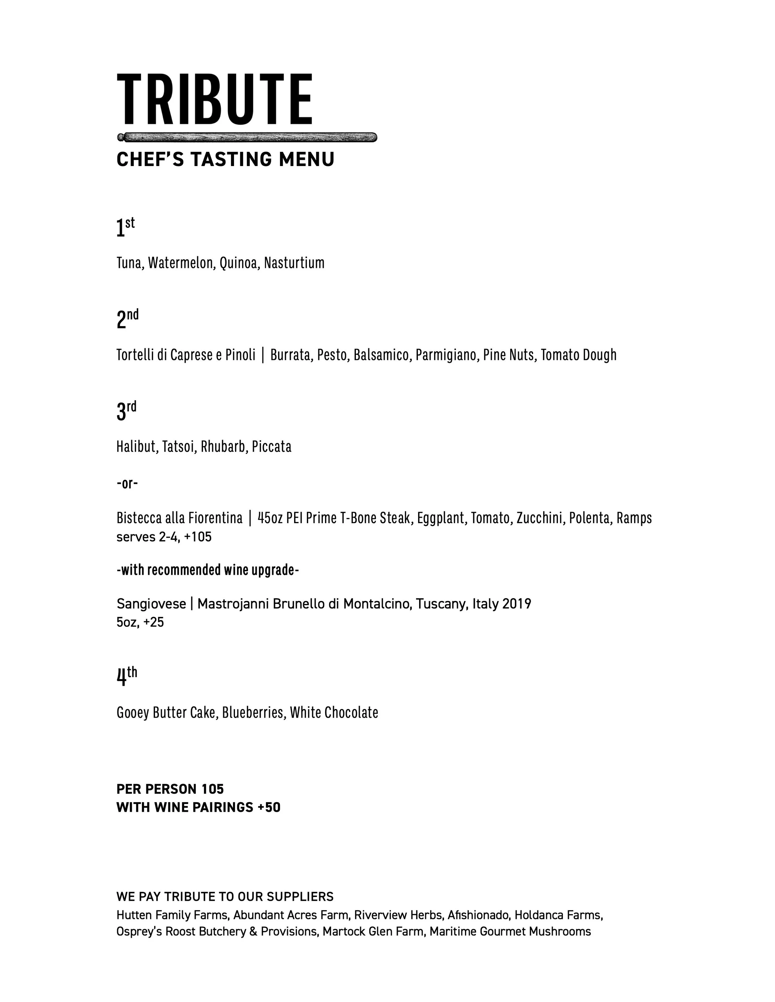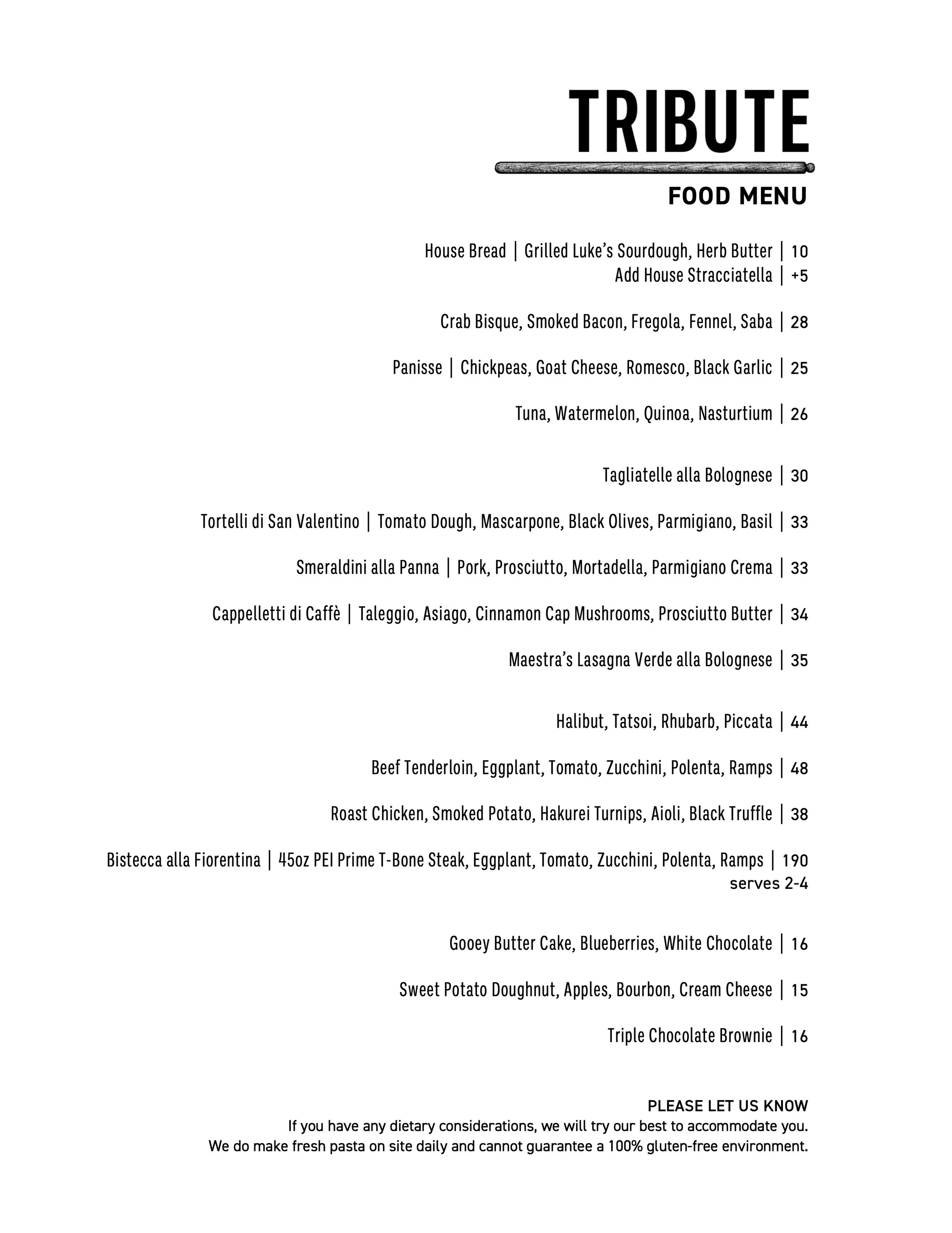 Please note that our menu is subject to change with the seasonality of local produce and our constant desire to innovate. Please keep in mind that because our menu is subject to change frequently and on short notice, it may differ upon your visit from what we have posted online.